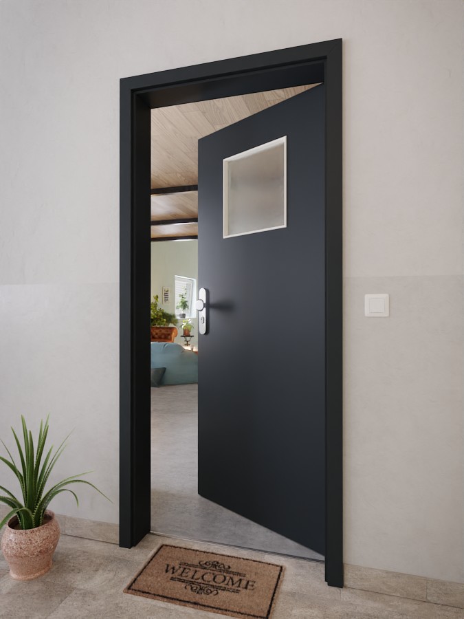 • Zakres dostawy: Skrzydło drzwiowe, zawiasy, zamek cylindryczny, szklenie, obniżona uszczelka podłogowa
