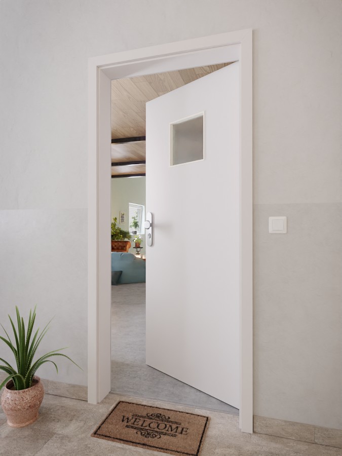 Drzwi HPL do mieszkań z ochroną akustyczną dzięki obniżającemu się uszczelnieniu podłogowemu: