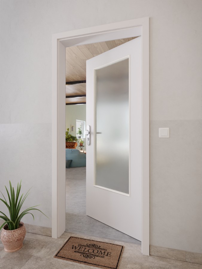 • Zakres dostawy: Skrzydło drzwiowe, zawiasy, zamek cylindryczny, szklenie, obniżona uszczelka podłogowa