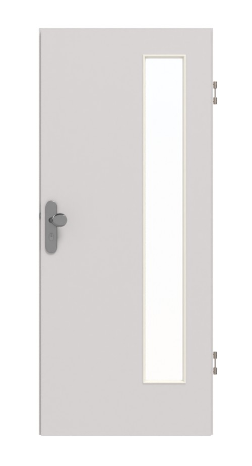 Wąski pasek świetlny o szerokości nieco poniżej 20 cm zdobi stronę zawiasową skrzydła drzwi. Wzór Jasnoszary można łączyć na wiele sposobów i zachwyca subtelną fakturą przypominającą piaskowe perełki. Wytrzymała warstwa wierzchnia z HPL wyróżnia się odpornością na zarysowania, uderzenia, wysoką temperaturę i wilgoć.