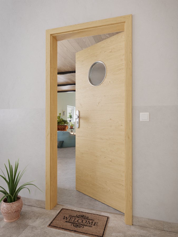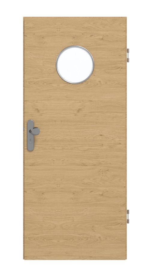 Skrzydło drzwiowe z zaokrąglonym wycięciem na szybę nadaje nowoczesny charakter. Dekor „Quer Authentic Asteiche” prezentuje się gustownie dzięki poziomej strukturze słojów oraz harmonijnemu rozmieszczeniu sęków. Piękny design powierzchni CPL jest chroniony przed zarysowaniami, uderzeniami i promieniowaniem UV.