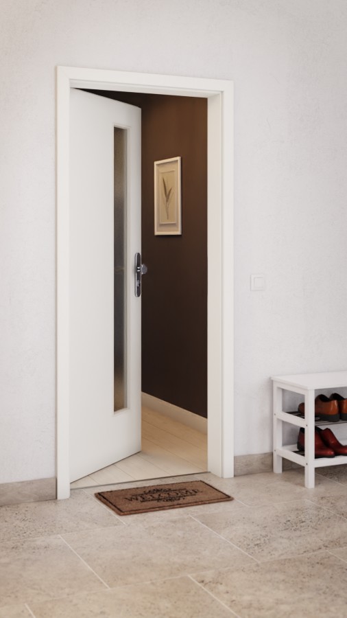 • Zakres dostawy: Skrzydło drzwiowe, zawiasy, zamek cylindryczny, szklenie, obniżona uszczelka podłogowa
