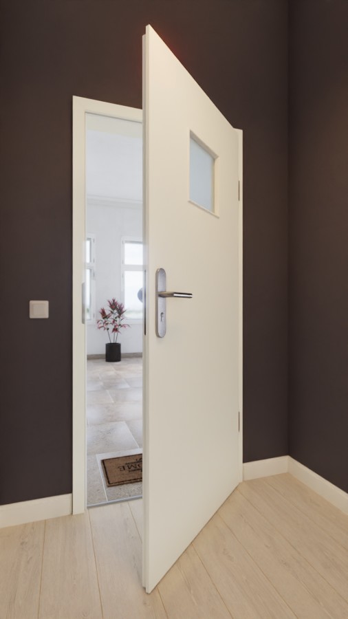 • Zakres dostawy: Skrzydło drzwiowe, zawiasy, zamek cylindryczny, szklenie, obniżona uszczelka podłogowa