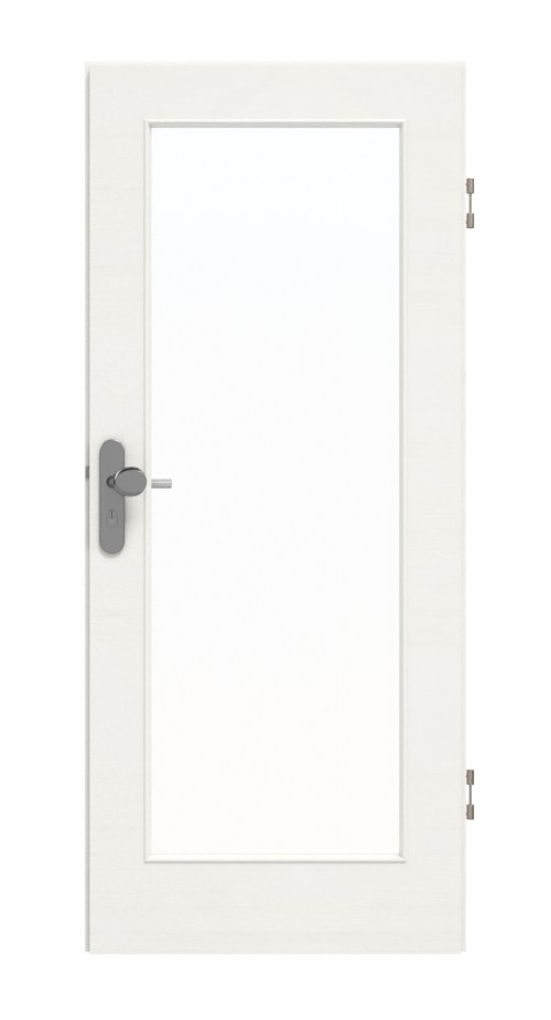 Duży, prostokątny otwór przeszklony w środkowej części drzwi nadaje pomieszczeniom jasny i przestronny charakter. Listwy szklane ze wszystkich czterech stron są zaokrąglone i dopełniają wykończenie wizualne. Nowoczesna biała kolorystyka skrzydła drzwiowego uzupełniona jest poprzecznym usłojeniem. Dzięki warstwie wierzchniej z CPL nie musisz martwić się o zarysowania, uderzenia i promieniowanie UV.