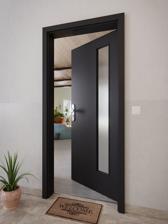• Zakres dostawy: Skrzydło drzwiowe, zawiasy, zamek cylindryczny, szklenie, obniżona uszczelka podłogowa