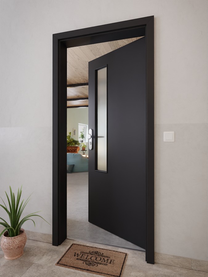 Stylowe drzwi wejściowe z obniżaną uszczelką podłogową: