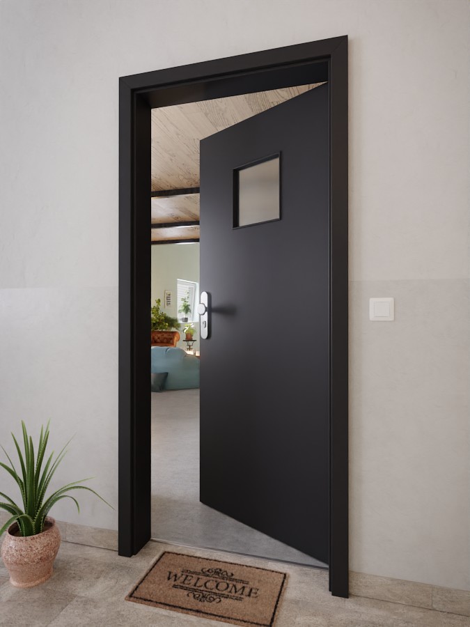 • Zakres dostawy: Skrzydło drzwiowe, zawiasy, zamek cylindryczny, szklenie, obniżona uszczelka podłogowa