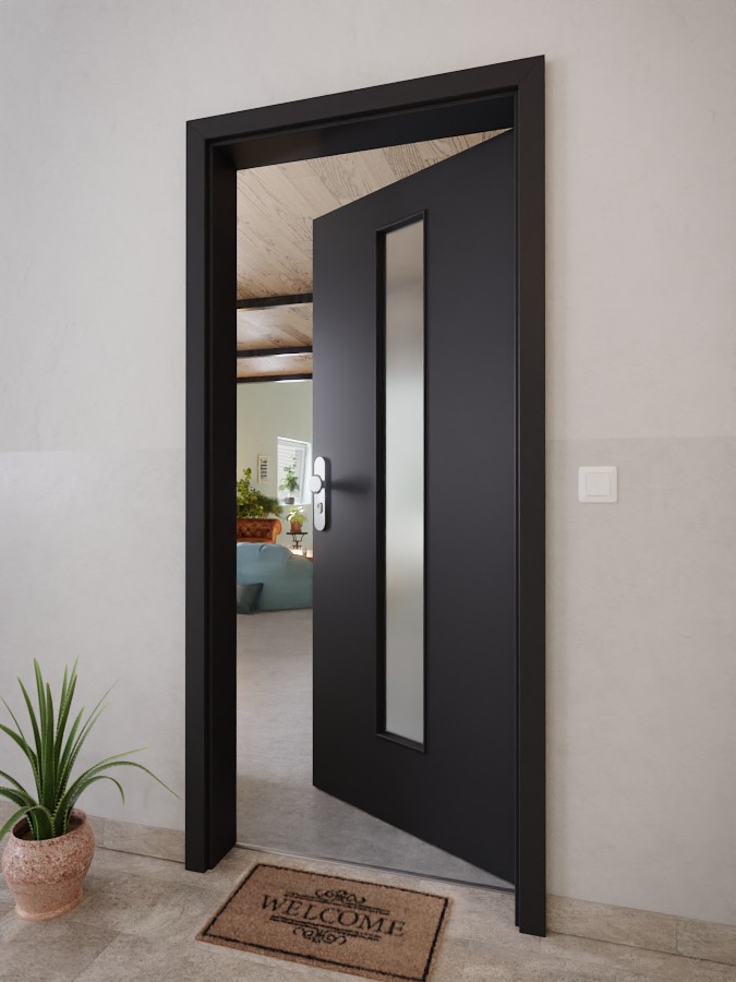 • Zakres dostawy: Skrzydło drzwiowe, zawiasy, zamek cylindryczny, szklenie, obniżona uszczelka podłogowa