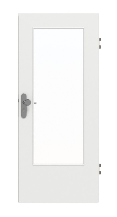 Dzięki dużemu przeszkleniu drzwi świetnie prezentują się nawet w ciemniejszych pomieszczeniach. Przepuszcza dodatkowe światło i tworzy jasną, otwartą atmosferę. Dekor G-TEC w kolorze białym z lakierem 9016 ma tę zaletę, że odciski palców są mniej widoczne.