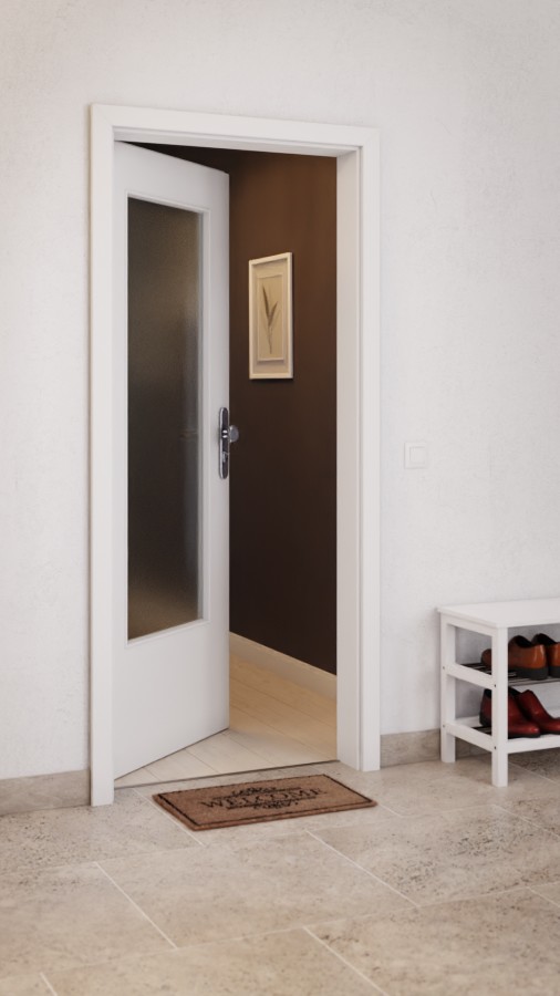 O stabilność dba płyta wiórowa, wbudowana w rdzeń skrzydła drzwiowego. Model klasy klimatycznej 3 pozostaje odporny na wypaczenia nawet przy regularnych różnicach temperatur po obu stronach drzwi. Już w standardzie niezawodne zawiasy, zamek i opuszczana uszczelka podłogowa należą do podstawowego wyposażenia drzwi.
