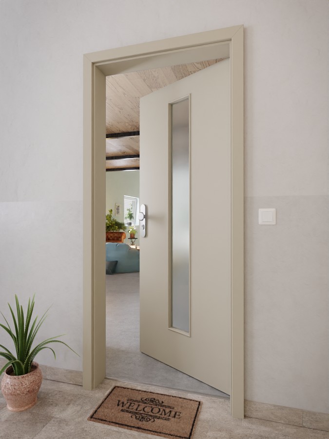 Rdzeń skrzydła drzwiowego stanowi płyta wiórowa . Model ten, wyróżniony klasą klimatyczną 3 , wykazuje wysoką odporność na wypaczenia nawet przy różnych temperaturach po obu stronach drzwi. Już w wersji standardowej otrzymują Państwo kompleksowy zestaw, który oprócz skrzydła drzwiowego obejmuje również wysokiej jakości zawiasy, niezawodny zamek oraz opuszczaną uszczelkę podłogową .