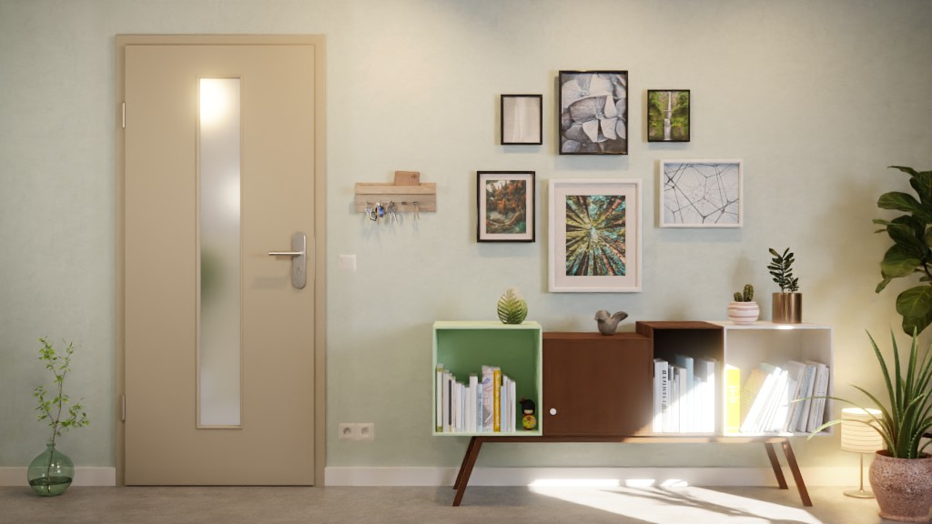 Nowoczesny akcent stanowi wycięcie na szybę o szerokości prawie 20 cm w środkowej części skrzydła drzwiowego. Folia dekoracyjna G-TEC w kolorze matowego szarego jedwabiu sprawia, że nieestetyczne odciski palców pozostają niewidoczne.