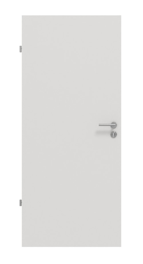 Cała powierzchnia skrzydła drzwiowego pokryta jest srebrnoszarą warstwą CPL.