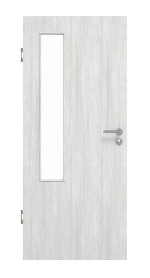 Krótki, wąski przeszklenie ciągnie się wzdłuż zawiasów na skrzydle drzwi. Dekor Authentic Grigio dzięki dyskretnej strukturze drewna z delikatnymi liniami słojów i odcieniami wkomponowuje się w każde wnętrze. Dzięki swojej odporności, łatwy w pielęgnacji dekor HPL jest odporny na ścieranie i zarysowania.