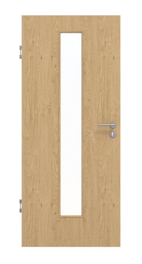 Wąski pasek z przeszkleniem zdobi środek skrzydła drzwi. Dzięki pionowym liniom słojów dekor Authentic Asteichewprowadza do Twojego domu naturalność i przytulność. Wytrzymała okleina HPL jest odporna na zarysowania i ścieranie. Ponadto łatwo się go czyści.