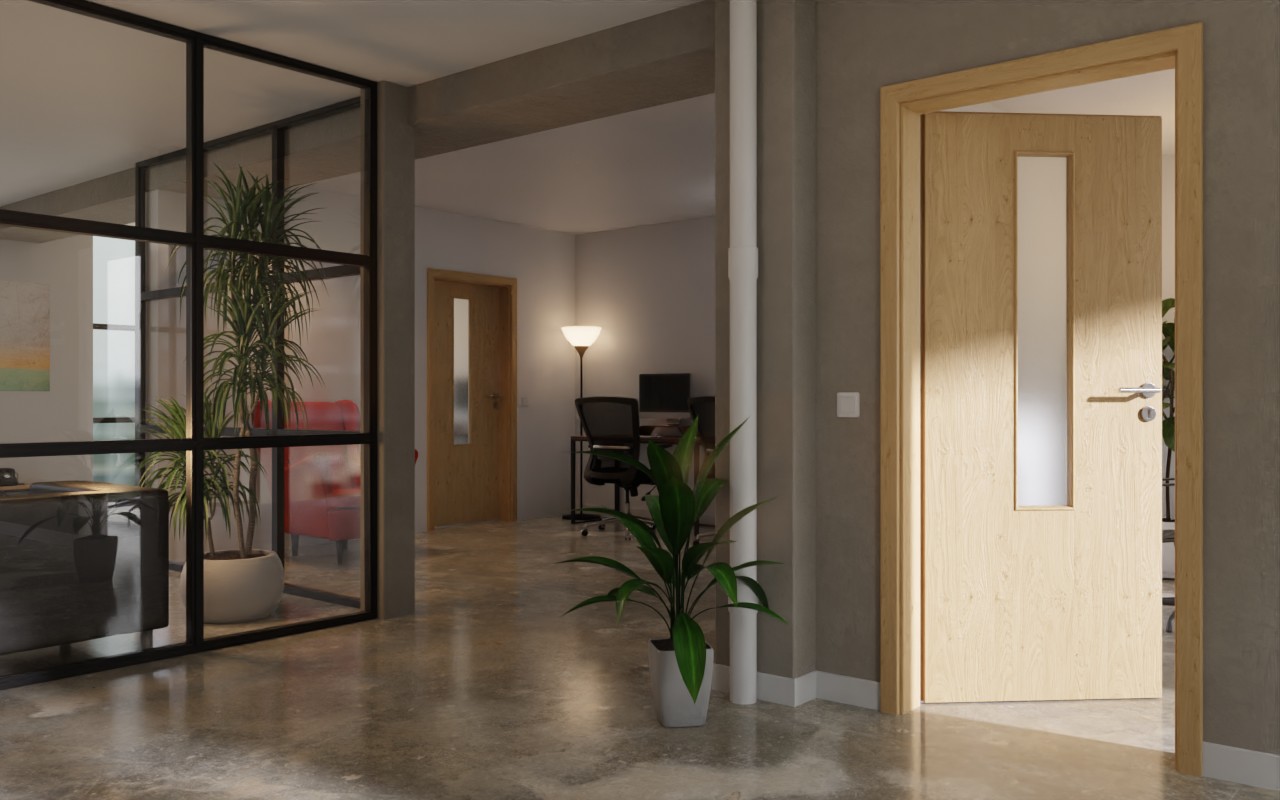 Atrakcyjna wewnętrzna drzwi obiektowe z dołączonymi listwami szklanymi: