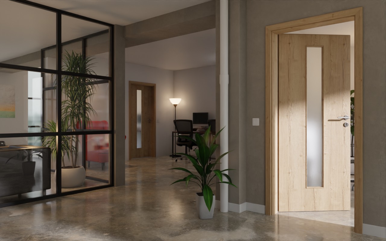 GARANT drzwi wewnętrzne do obiektu Authentic dąb szczelinowy GCK08 z przeszkleniem LA-4 na środku