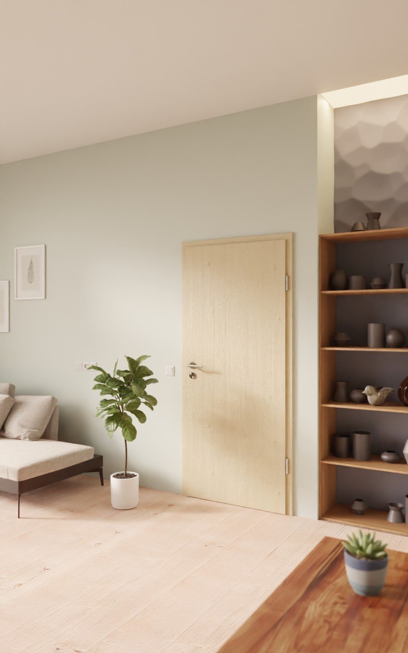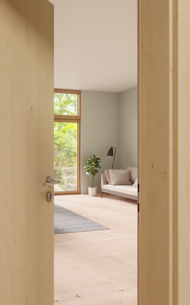 Aby stworzyć nowoczesną atmosferę: Indywidualny projekt wnętrza dopełniają drzwi wewnętrzne w kolorze Natura Ahorn firmy Garant.