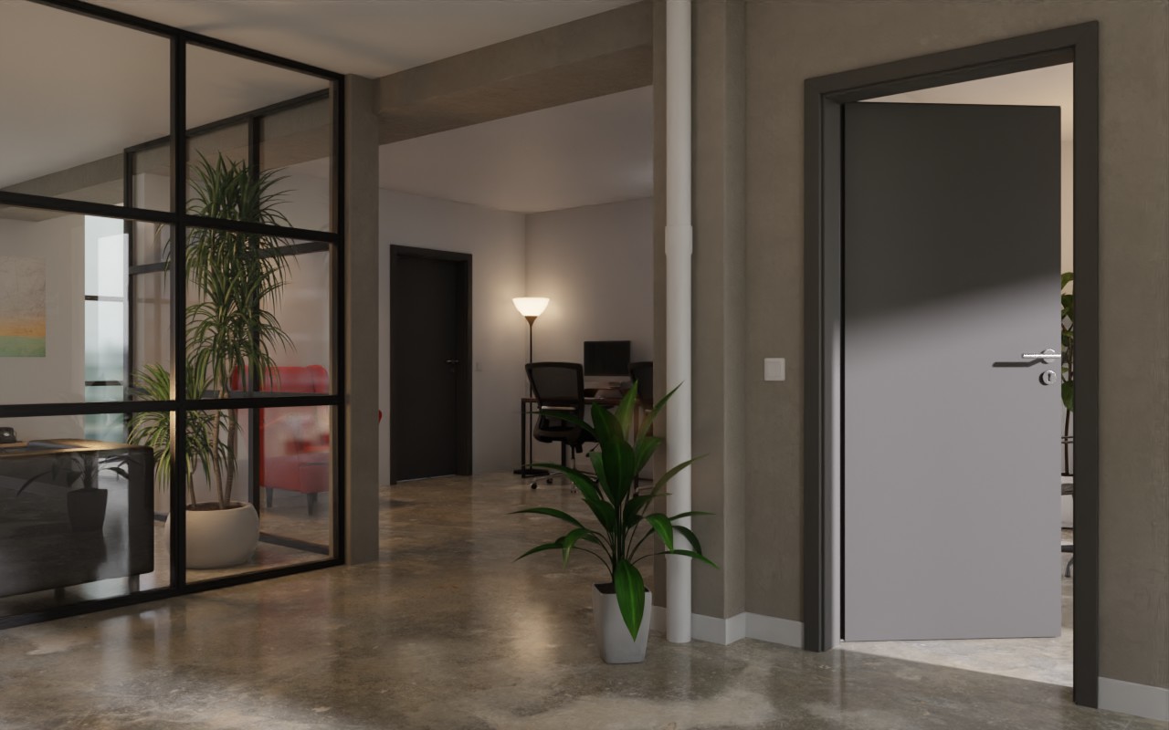 Ciemny antracytowy kolor skrzydła drzwiowego elegancko uzupełnia nowoczesne wyposażenie wnętrza i tworzy fascynujące kontrasty. Dzięki powierzchni CPL efekt ten jest jeszcze bardziej intensywny.