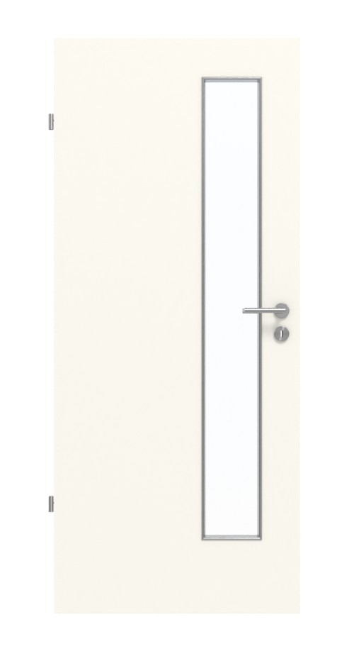 Po stronie zamka znajduje się długie, wąskie przeszklenie. Dzięki jasnej powierzchni w kolorze bieli perłowej model ten pasuje do każdego stylu wnętrza. Zarysowania, ścieranie i uderzenia nie mają wpływu na niezwykle wytrzymałą powierzchnię HPL, odporną na działanie popularnych środków czyszczących.