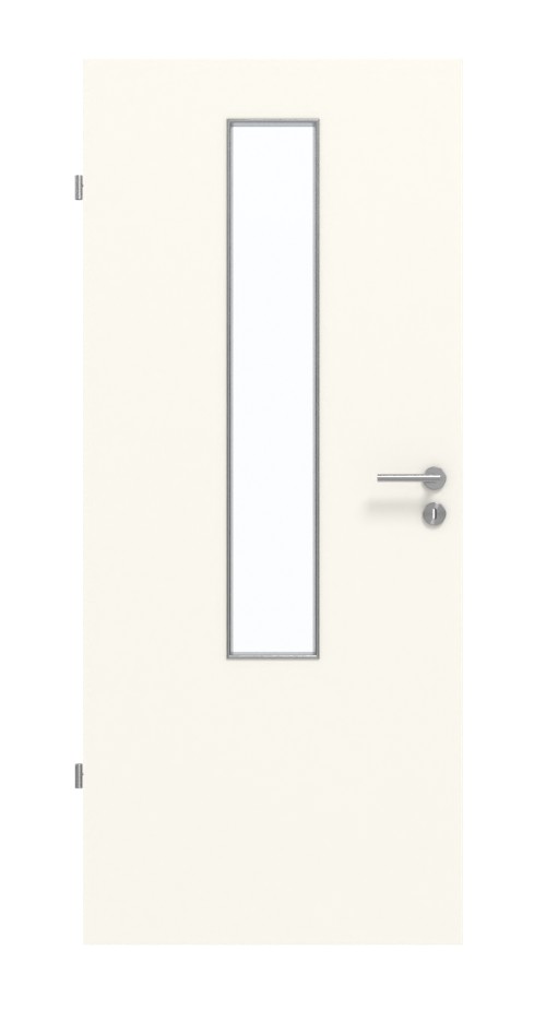 Przez środek skrzydła drzwiowego przebiega krótkie, wąskie wycięcie na szybę. Umożliwia łagodne wpuszczanie światła dziennego nawet do ciemnych pomieszczeń. Dekor w kolorze bieli perłowej uzupełnia delikatna struktura. Dzięki subtelnemu designowi pasuje do każdego środowiska montażu. Wytrzymała warstwa HPL jest odporna na ścieranie, uderzenia i zarysowania oraz wyjątkowo odporna na działanie światła.