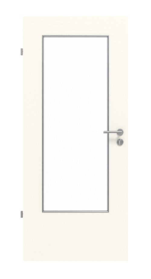 Dzięki dużemu przeszkleniu drzwi sprawiają wrażenielekkich i otwartych. Nałożone listwy przyszybowe stanowią dla nich odpowiednią ramę. Oprócz przyjemnej w dotyku faktury, dekor Pearl White przekonuje neutralnym odcieniem, który można łatwo łączyć z innymi kolorami. Wytrzymała warstwa HPL jest odporna na ścieranie, uderzenia i zarysowania oraz wyjątkowo odporna na działanie światła.