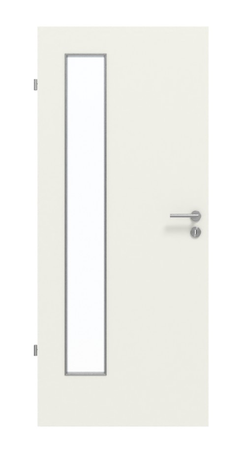 Skrzydło drzwiowe zdobi smukłe, prostokątne przeszklenie. Odcień Rain to nowoczesna i subtelna mieszanka kolorów szarych i białych. Doskonale pasuje do każdego wnętrza. Wytrzymała powłoka HPL jest szczególnie odporna na zarysowania i ścieranie oraz na dostępne w handlu środki czyszczące.