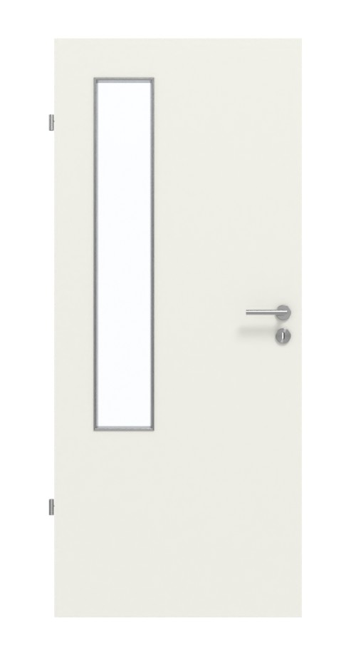 Najważniejszym elementem nowoczesnego designu jest krótkie, smukłe przeszklenie, które jest umieszczone po stronie zawiasów w górnej części drzwi. Dzięki subtelnej, biało-szarej kolorystyce Rain drzwi subtelnie podkreślają indywidualny wystrój wnętrza. Wytrzymała okładzina HPL jest odporna na zarysowania, uderzenia i ścieranie oraz łatwa w czyszczeniu.