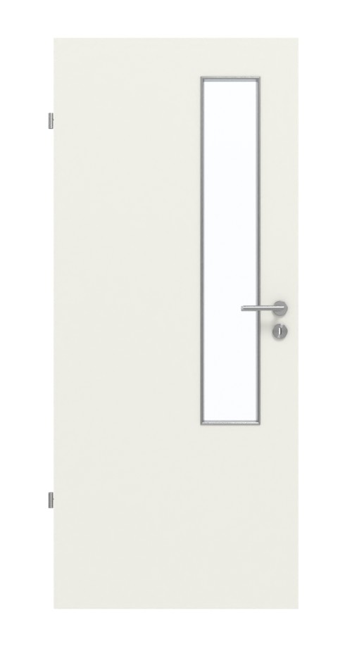 Nowoczesny akcent stanowi wąskie, prostokątne wycięcie na szybę po stronie zamka na skrzydle drzwiowym. Dzięki subtelnej, biało-szarej kolorystyce Rain drzwi subtelnie podkreślają indywidualny wystrój wnętrza. Zarysowania, ścieranie i uderzenia nie mają wpływu na niezwykle wytrzymałą powierzchnię HPL, odporną na działanie popularnych środków czyszczących.