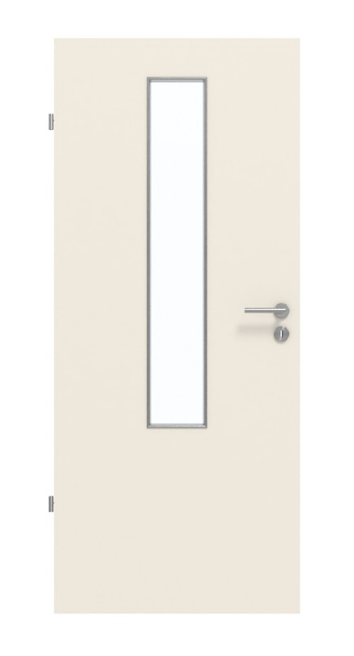 Prostokątne przeszklenie pośrodku skrzydła drzwiowego ma szerokość prawie 20 cm. Pozwala na delikatny dopływ światła. Dzięki jednolitej, kremowej barwie Dawn dekor ten pasuje do każdego stylu wnętrza. Wytrzymała powłoka HPL jest szczególnie odporna na zarysowania i ścieranie oraz na dostępne w handlu środki czyszczące.
