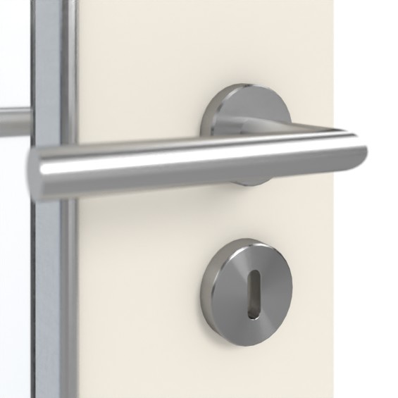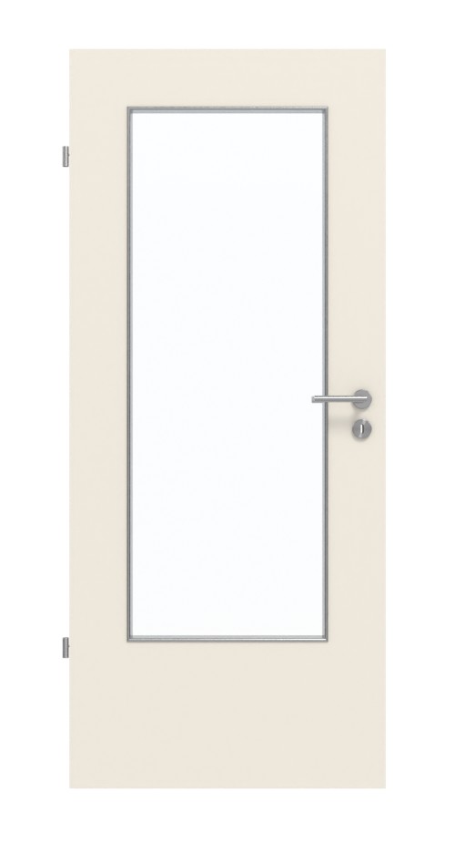 Dzięki dużemu wycięciu na szybę drzwi wpuszczają światło do pomieszczenia. Nałożone listwy tworzą piękną ramę. Kremowo-biały odcień Dawn wprowadza do pomieszczeń ciepłą i przytulną atmosferę. Wytrzymała i odporna na światło warstwa wierzchnia HPL jest odporna na zarysowania i ścieranie i została zaprojektowana z myślą o codziennym intensywnym użytkowaniu.