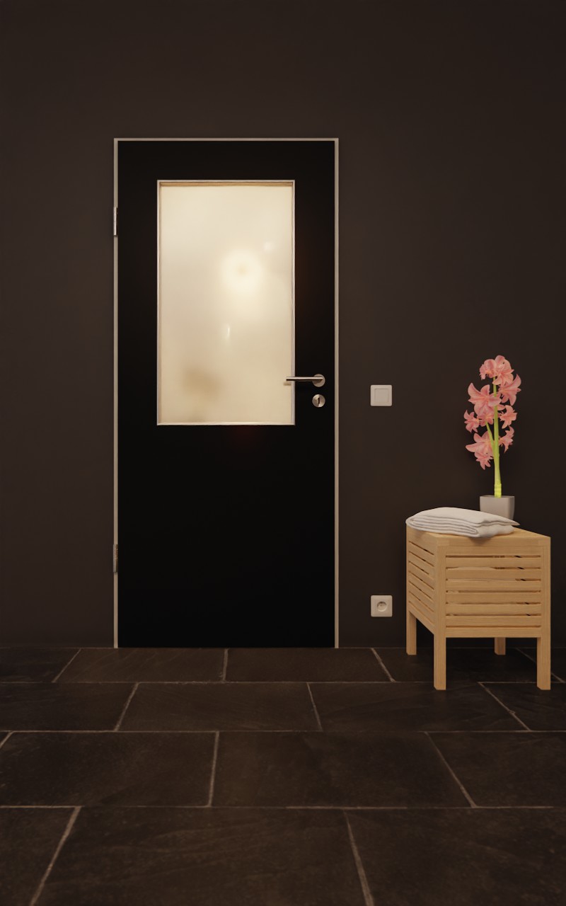 Drzwi do pomieszczeń wilgotnych są odporne na krótkotrwałą wysoką wilgotność powietrza sięgającą nawet 100 procent. Również sporadycznie spływająca kondensacja i rozpryski wody nie powodują żadnych uszkodzeń. Najlepszą możliwą stabilność zapewnia pełna wkładka z płyty wiórowej stanowiąca rdzeń zaokrąglonego skrzydła drzwiowego o grubości około 40 mm. Dzięki przypisaniu do klasy obciążenia M drzwi do pomieszczeń wilgotnych doskonale nadają się do użytku prywatnego.