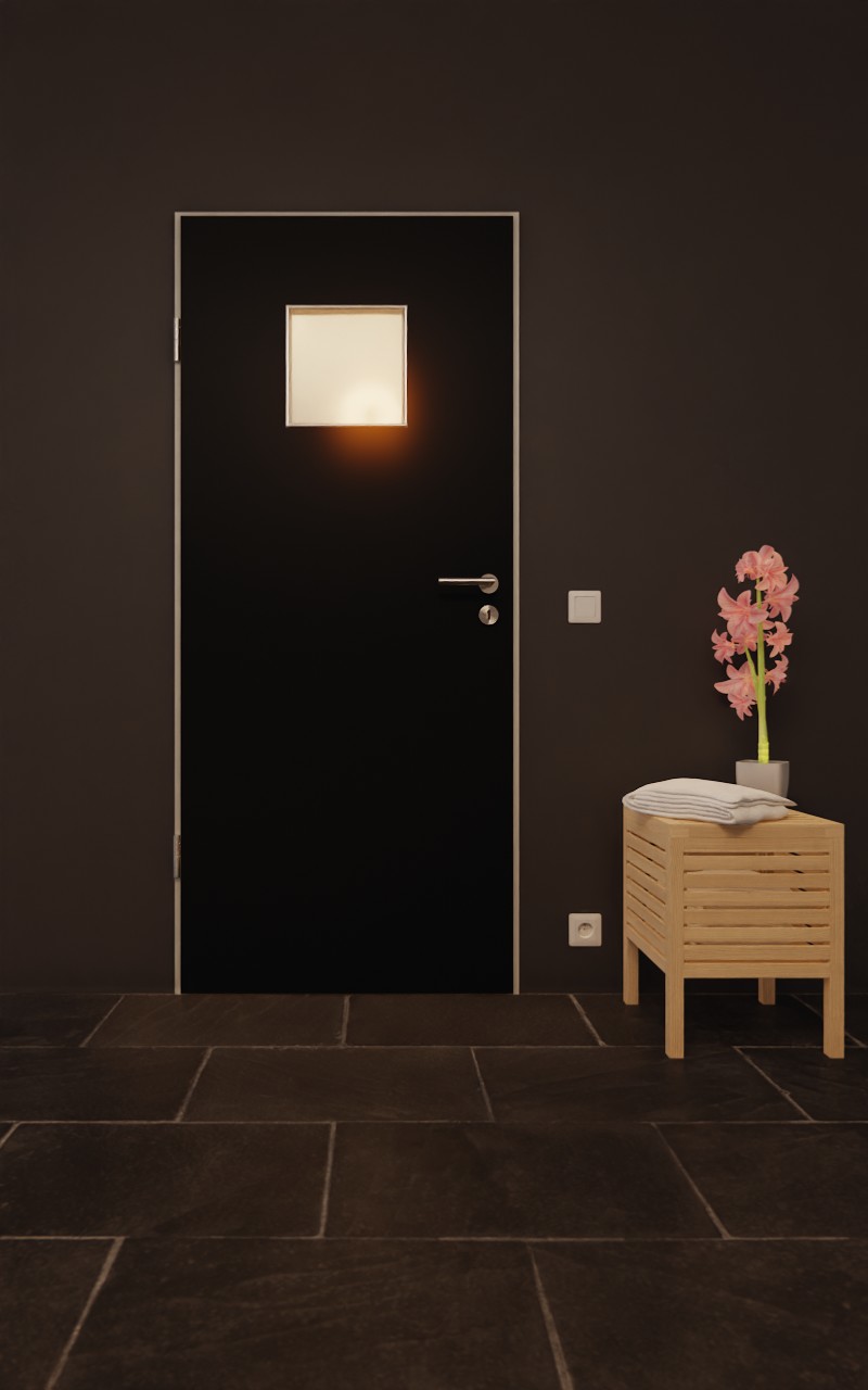Drzwi do pomieszczeń wilgotnych wyróżniają się odpornością na krótkotrwałą wysoką wilgotność powietrza dochodzącą do 100 procent. Ponadto bez problemu wytrzymuje krótkotrwałe rozpryski i spływającą wodę kondensacyjną. Wystarczającą stabilność zapewnia pełna wkładka z płyty wiórowej w rdzeniu skrzydła drzwiowego. Drzwi do pomieszczeń wilgotnych spełniają wymagania klasy obciążenia M, dzięki czemu doskonale nadają się do użytku prywatnego.