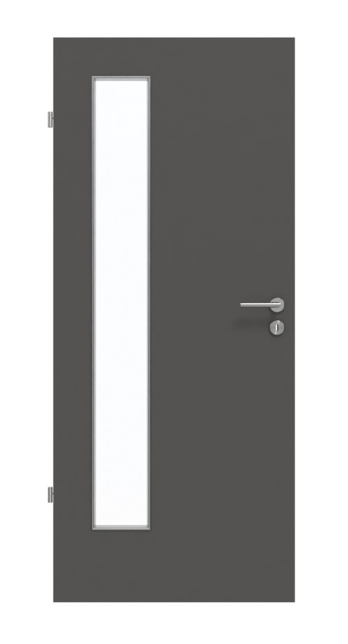 Design charakteryzuje się smukłym przeszkleniem po stronie zawiasów skrzydła drzwiowego. Dekor Ebony umiejętnie łączy ciemne, miejskie wykończenie wizualne z zmysłową fakturą. Zarysowania, ścieranie i uderzenia nie mają wpływu na niezwykle wytrzymałą powierzchnię HPL, odporną na działanie popularnych środków czyszczących.