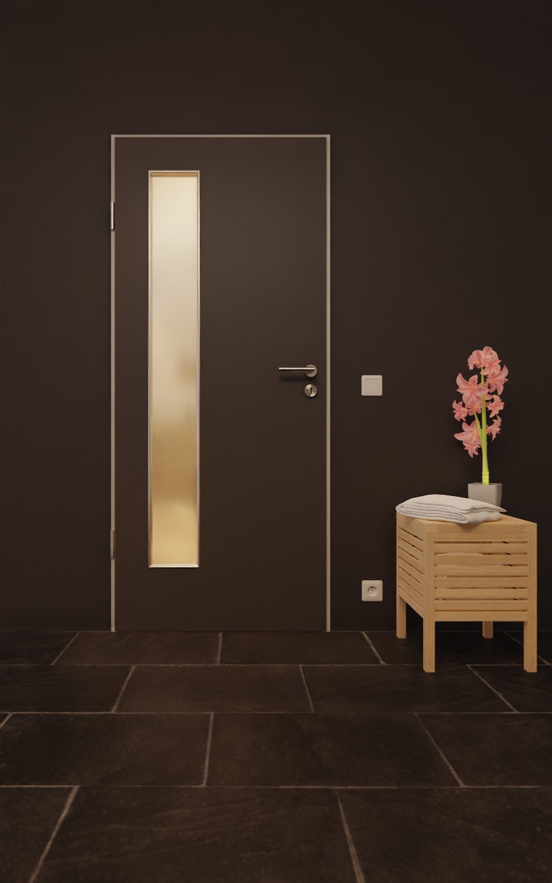 Drzwi do pomieszczeń wilgotnych są odporne na sporadyczne zachlapania wodą oraz krótkotrwałą wilgotność powietrza do 100 procent. Krótkotrwałe spływanie skroplonej wody i wahania temperatury również nie mają wpływu na model. Wystarczającą stabilność zapewnia pełna wkładka z płyty wiórowej w rdzeniu skrzydła drzwiowego. Dzięki klasyfikacji do klasy obciążenia M drzwi do pomieszczeń wilgotnych doskonale nadają się do użytku prywatnego.