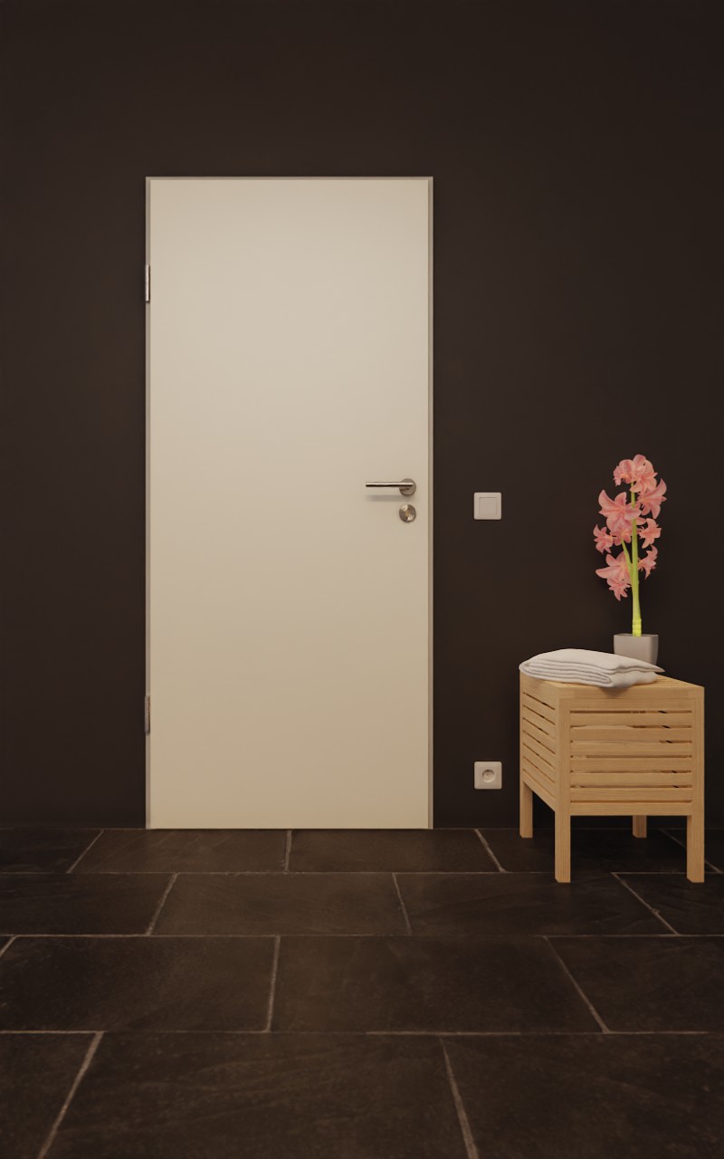 Drzwi do pomieszczeń wilgotnych są odporne na krótkotrwałą wysoką wilgotność powietrza sięgającą nawet 100 procent. Również sporadycznie spływająca kondensacja i rozpryski wody nie powodują żadnych uszkodzeń. Najlepszą możliwą stabilność zapewnia wkładka z płyty wiórowo-otworowej stanowiąca rdzeń zaokrąglonego skrzydła drzwiowego o grubości około 40 mm. Drzwi do pomieszczeń wilgotnych spełniają wymagania klasy obciążenia M, dzięki czemu idealnie nadają się do użytku prywatnego.