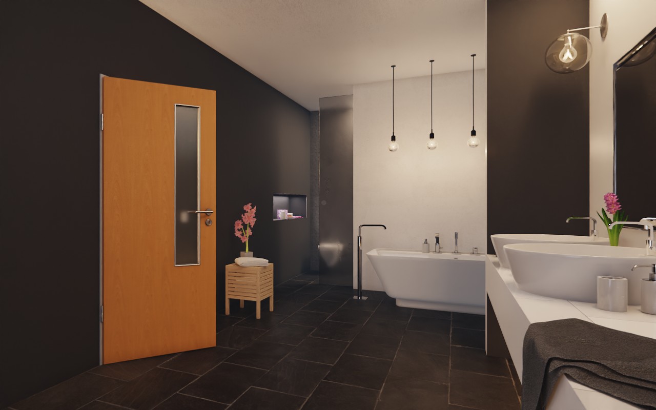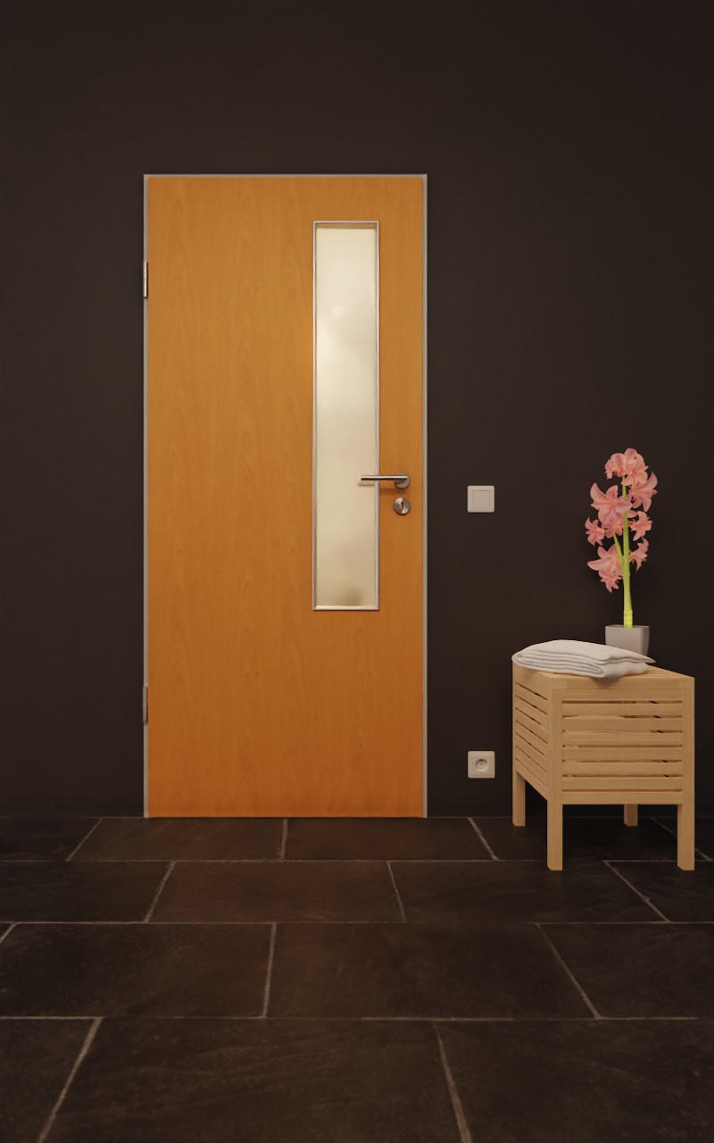 Drzwi dekoracyjne wyróżniają się łatwą do czyszczenia okleiną HPL oraz efektownym przeszkleniem: