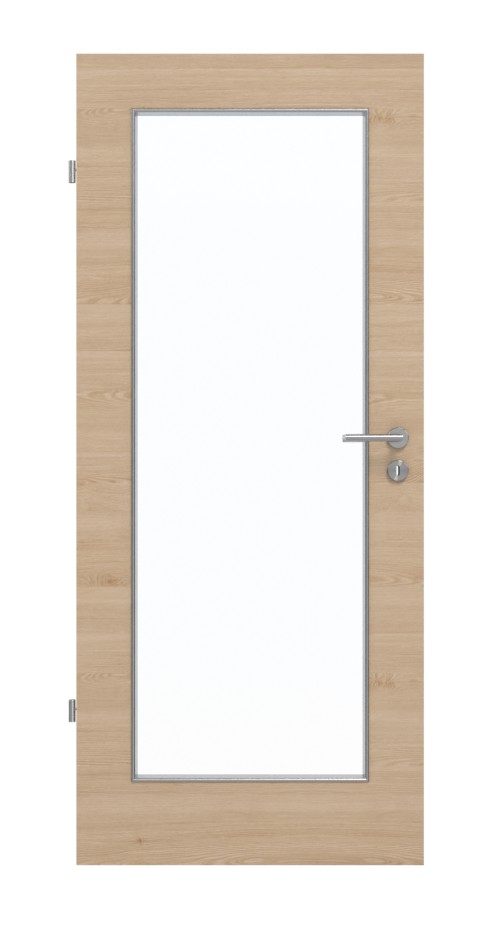 Duże przeszklenie zapewnia doskonałe doświetlenie pomieszczeń. Listwy przyszybowe po bokach tworzą ramę prostokąta. Na dekorze Authentic Achat, charakteryzującym się delikatnym, poprzecznym usłojeniem i jasną kolorystyką, ujawnia się naturalny wygląd drewna. Wytrzymały dekor HPL jest odporny na działanie światła, zarysowania, uderzenia i ścieranie i można go łatwo czyścić za pomocą dostępnych w handlu środków czyszczących.