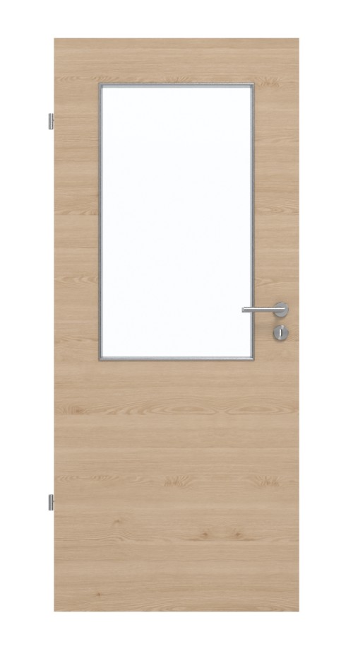 Prostokątny otwór okienny zajmuje górną część drzwi i wpuszcza do środka światło. Delikatne, poprzeczne usłojenie nadaje charakteru harmonijnemu dekorowi drewnianemu Authentic Achat. Wytrzymała warstwa HPL jest odporna na ścieranie, uderzenia i zarysowania oraz wyjątkowo odporna na działanie światła.