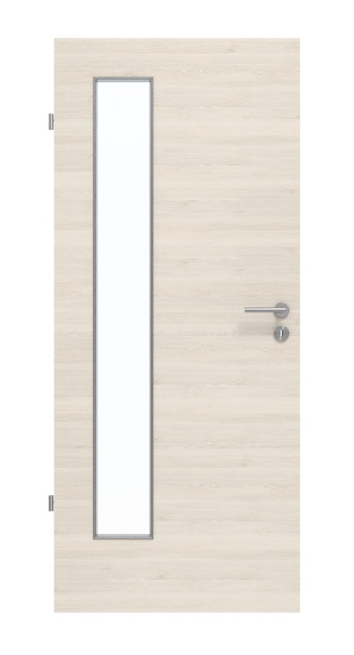 Wzdłuż strony zawiasowej znajduje się długie, wąskie wycięcie na szybę. Na kremowym dekorze Quer Authentic Perl delikatne usłojenia tworzą subtelny efekt drewna. Wytrzymały dekor HPL jest odporny na działanie światła, zarysowania, uderzenia i ścieranie i można go łatwo czyścić za pomocą dostępnych w handlu środków czyszczących.