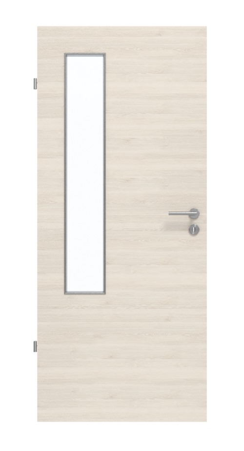 Po stronie zawiasów znajduje się wycięcie na szybę o szerokości prawie 20 cm, które zapewnia dyskretny dopływ światła. Dzięki jasnemu wyglądowi drewna i pionowemu ułożeniu dekor Quer Authentic Perl idealnie wpisuje się w aktualne trendy. Wytrzymała warstwa HPL jest odporna na ścieranie, uderzenia i zarysowania oraz wyjątkowo odporna na działanie światła.