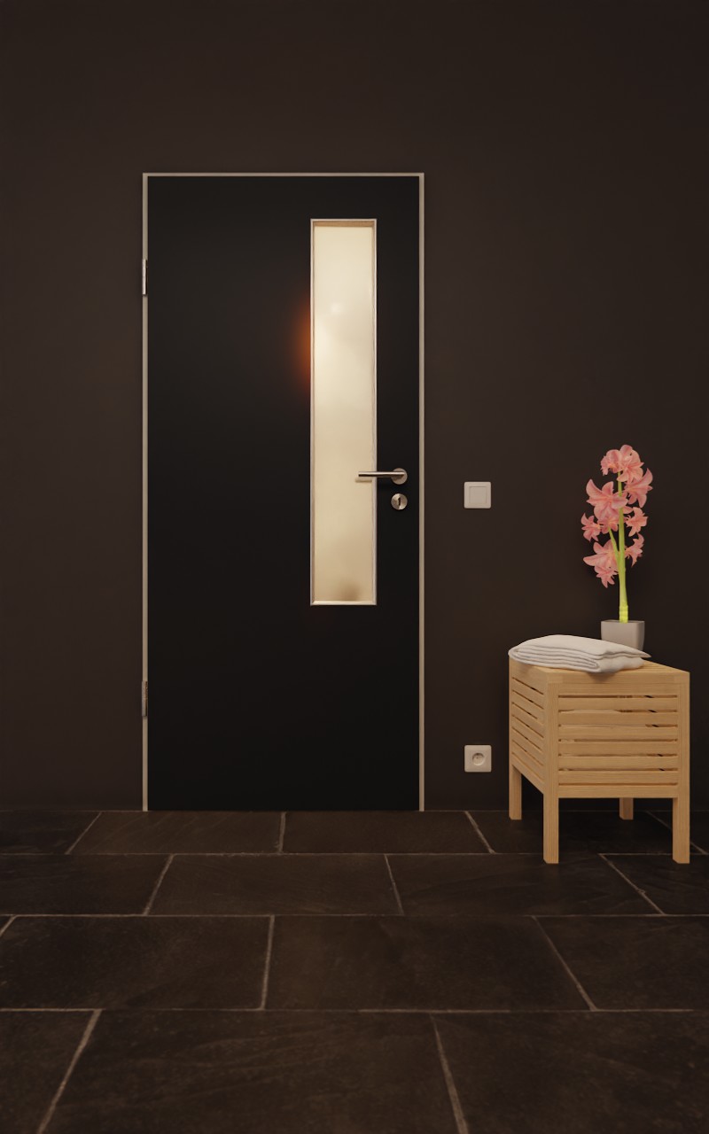 GARANT drzwi do pomieszczeń wilgotnych U12000SD wulkaniczna czerń GHK08 z przeszkleniem LA-5 od strony zamka