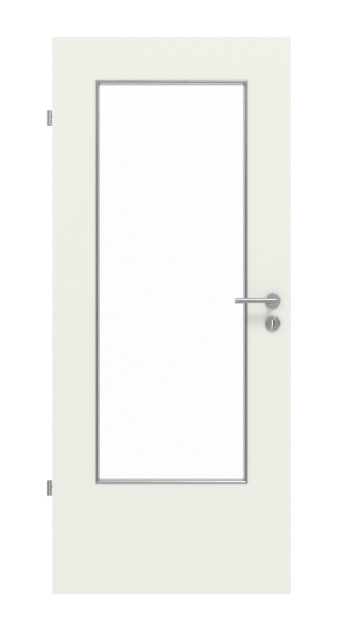 Duże, prostokątne wycięcie na szybę zapewnia dodatkowy dopływ światła do pomieszczenia. Subtelne połączenie szarego i białego koloru charakteryzuje nowoczesny design powierzchni Rain. Zarysowania, ścieranie i uderzenia nie mają wpływu na niezwykle wytrzymałą powierzchnię HPL, odporną na działanie popularnych środków czyszczących.