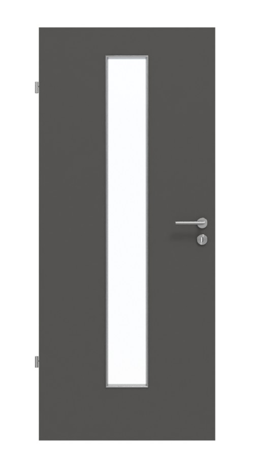 Nowoczesny akcent nadaje wycięcie na szybę w środkowej części skrzydła drzwiowego o szerokości prawie 20 cm. W szarym odcieniu dekor Ebony gustownie uzupełnia nowoczesną architekturę wnętrz. Wytrzymały dekor HPL jest odporny na działanie światła, zarysowania, uderzenia i ścieranie i można go łatwo czyścić za pomocą dostępnych w handlu środków czyszczących.