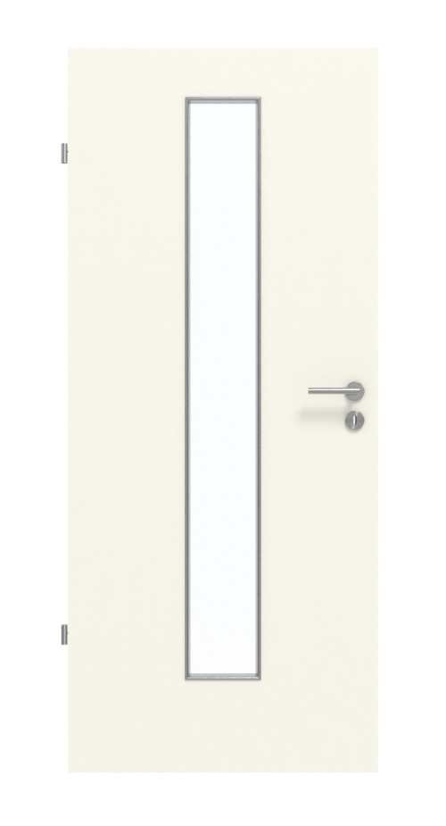 Środek powierzchni drzwi zajmuje wąski, prostokątny wycięty fragment szyby . Ciepły odcień biały charakteryzuje piękny dekor Snow White. Jego delikatna struktura przypominająca piasek sprawia, że jest przyjemny w dotyku. Wytrzymała warstwa HPL jest odporna na ścieranie, uderzenia i zarysowania oraz wyjątkowo odporna na działanie światła.