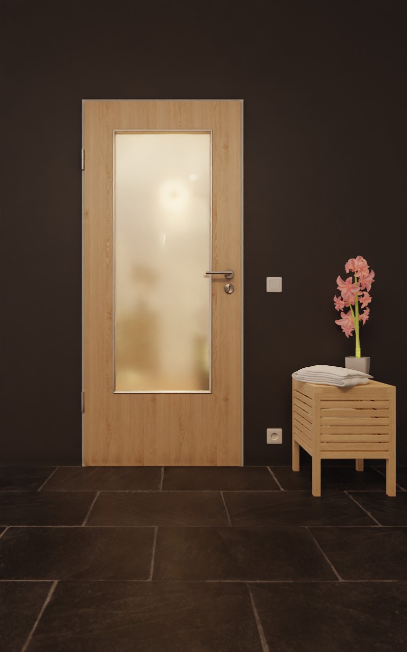 Drzwi do pomieszczeń wilgotnych wyróżniają się odpornością na rozpryski wody i krótkotrwałą wysoką wilgotnością powietrza sięgającą nawet 100 procent. Ponadto są odporne na wahania temperatury i sporadyczne spływy wody kondensacyjnej. Najlepszą stabilność zapewnia pełna wkładka z płyty wiórowej w skrzydle drzwiowym. Dzięki przypisaniu do klasy obciążenia M drzwi do pomieszczeń wilgotnych doskonale nadają się do użytku prywatnego.