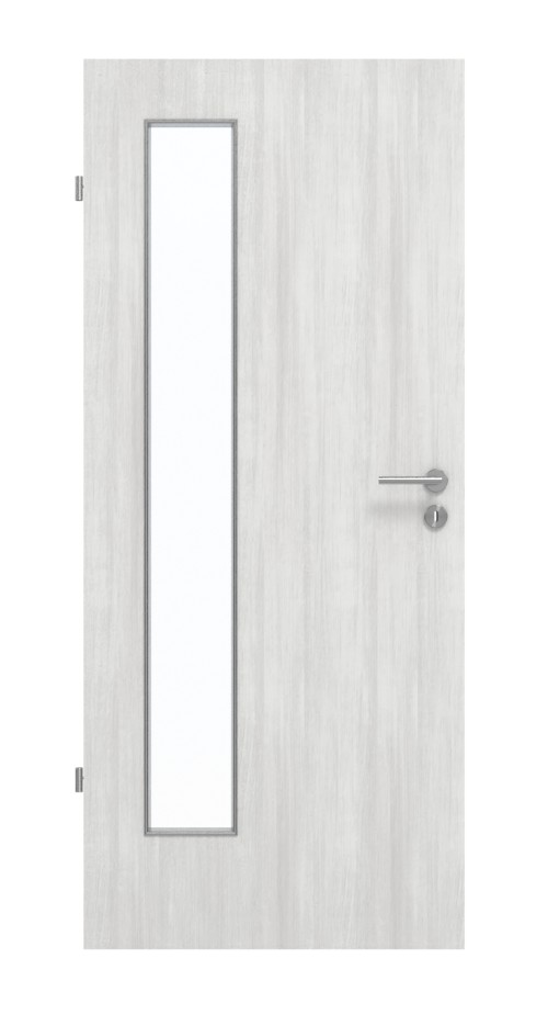 Na stronie zawiasów skrzydła drzwi znajduje się prostokątny otwór świetlny o szerokości prawie 20 cm. Jasnoszare usłojenie, przypominające drewno, nadaje dekorowi Authentic Grigio nowoczesny charakter. Wytrzymały laminat HPL jest odporny na zarysowania, uderzenia i ścieranie oraz łatwy do czyszczenia.