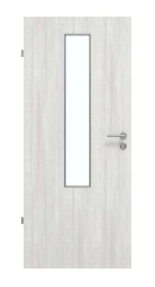 W górnej części skrzydła drzwi znajduje się wąski przeszklenie. Dzięki podłużnemu usłojeniu i delikatnym, jasnoszarym odcieniom w dekorze Authentic Grigio uzyskuje nowoczesny wygląd drewna. Wytrzymała powłoka HPL jest szczególnie odporna na zarysowania i ścieranie oraz odporna na powszechnie stosowane środki czyszczące.
