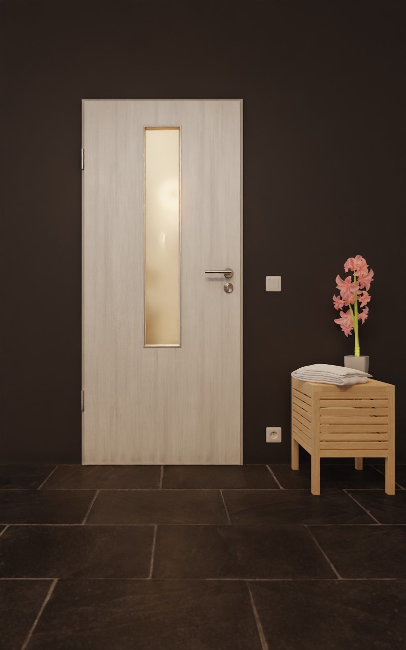 Drzwi do pomieszczeń wilgotnych wyróżniają się trwałą i odporną powłoką HPL oraz skutecznym przeszkleniem: