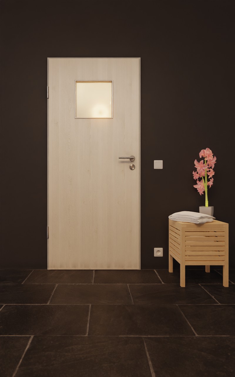 Ponadczasowe drzwi do pomieszczeń wilgotnych wyróżniają się trwałą i odporną powłoką HPL oraz odpornością na krótkotrwałe zachlapania i kondensację: